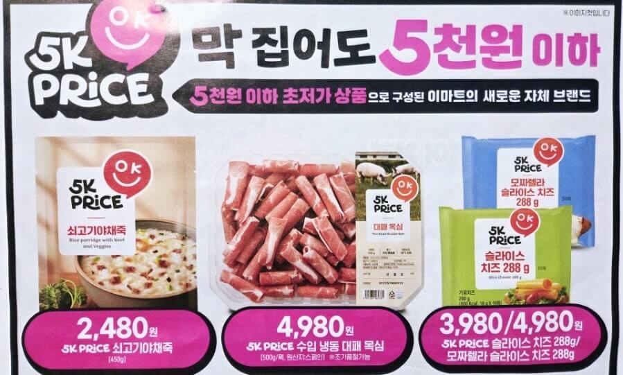 Emart 5K PRICE is a strategic brand where all of Emart’s Private Brand products are priced at ₩5,000 or less.