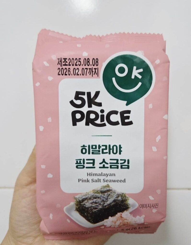 - Pink Salt Seaweed (김): ₩3,980 (5g x 12 packs)